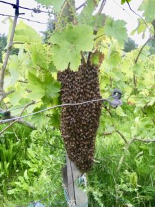 Een bijenzwerm ontstaat wanneer een bijenvolk zich voortplant. De oude koningin verlaat samen met een grote groep werksters de bijenkast en vormt tijdelijk een dichte tros bijen op een tak, struik, paal of gevel. De zwerm is rustig en niet agressief, omdat de bijen geen nest of broed te verdedigen hebben. De zwerm blijft meestal enkele uren tot maximaal een paar dagen hangen, terwijl speurbijen een nieuwe nestplaats zoeken.